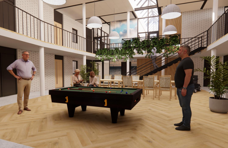 Bij de planontwikkeling heeft architect Archikon rekening gehouden met de wensen van de bewoners en betrokken partijen. Ook is er een klankbordgroep samengesteld, die bestaat uit een aantal bewoners. Zij denken samen met de interieurarchitect Green Dot Design mee over de inrichting van het gebouw. Roggeband Bouw gaat de verbouwing uitvoeren. Naar verwachting is de verbouwing eind 2025 gereed.